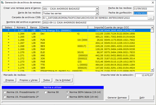 EuroMinuta le permite gestionar remesas siguiendo las normas SEPA. Podrá generar archivos para su transmisión por internet a la entidad bancaria.