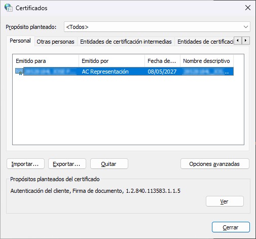 Instalación de un certificado PFX para su uso por el sistema Veri*Factu
