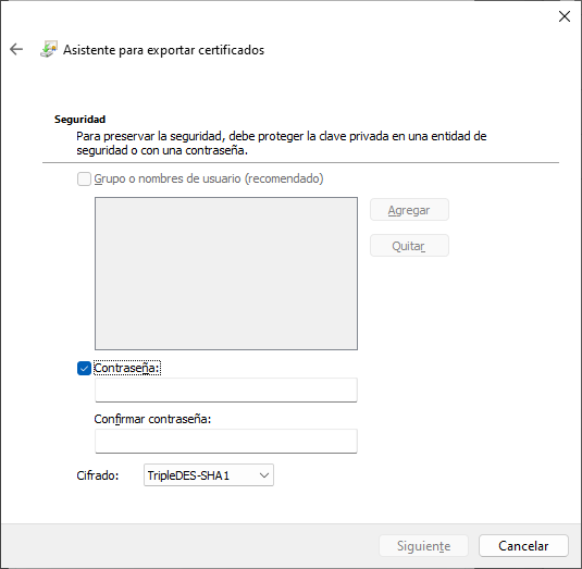 Contraseña' y escribir la misma, repitiendola en los dos campos mostrados.