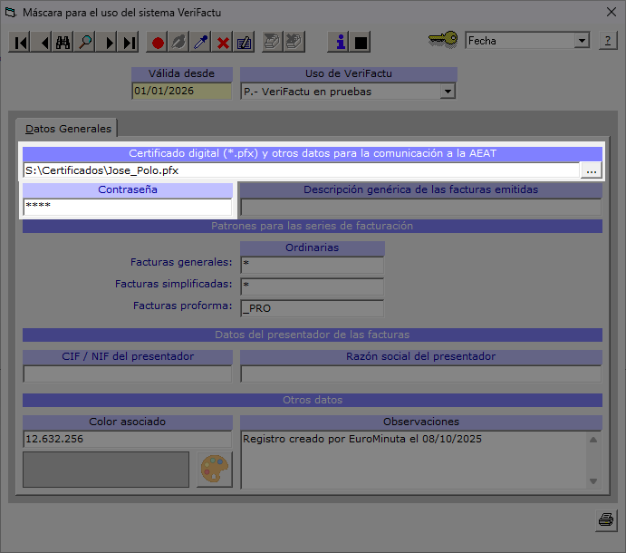 Configuración del certificado en las aplicaciones EuroVenta y EuroMinuta