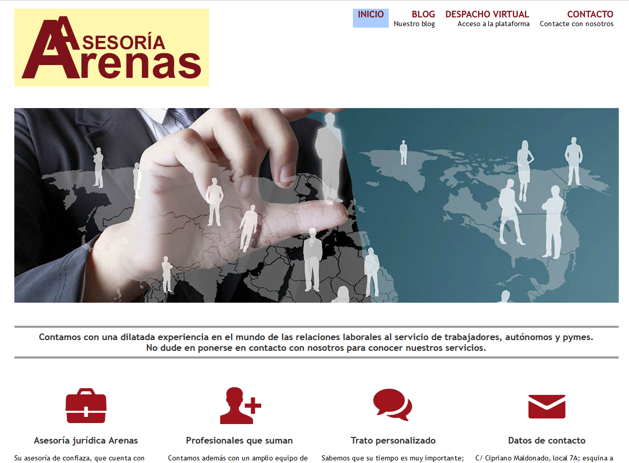 con cuatro áreas en la página web: presentación, blog, despacho virtual y contacto. De