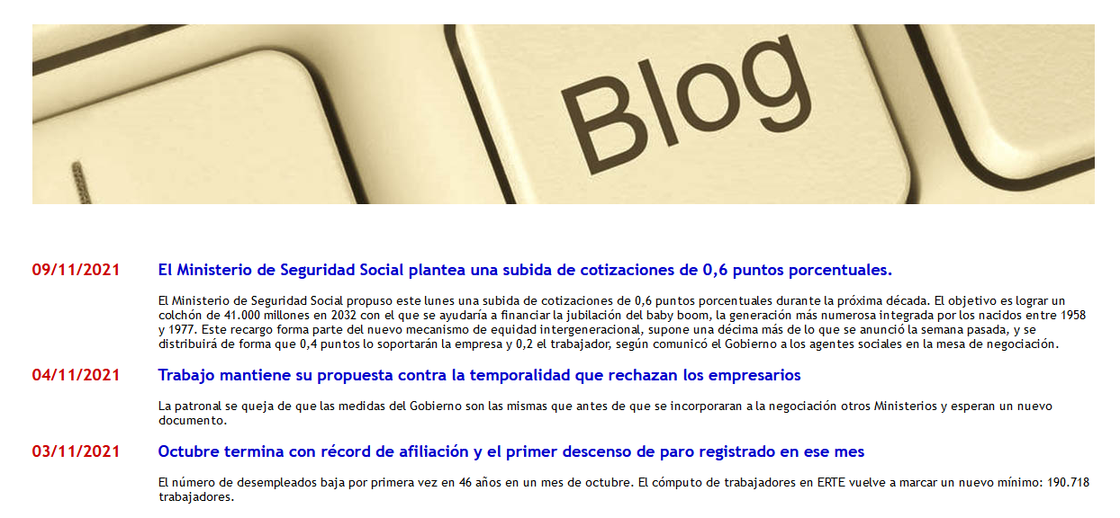 Las entradas del blog se mantienen desde el programa EuroMinuta mediante la tabla
