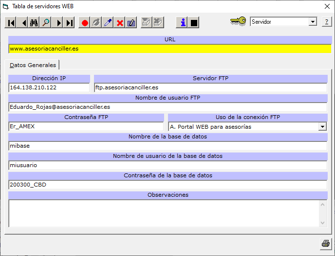 Configuración del servidor en EuroMinutaSeleccione, en el menú general,