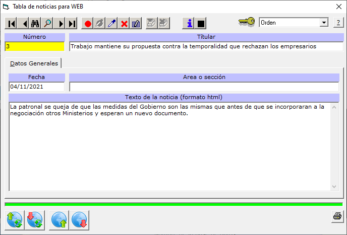 - Por último, el texto de la noticia. Indicamos que este texto se mostrará tal cual se