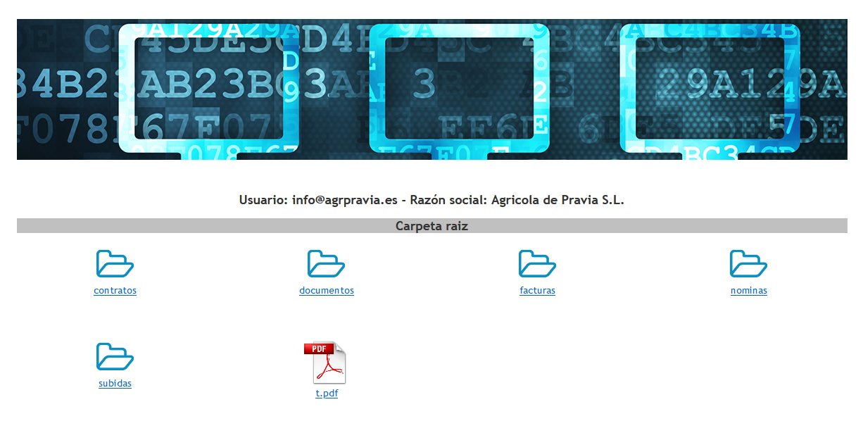 En este ejemplo real vemos que el usuario del portal dispone de cinco carpetas. Una de