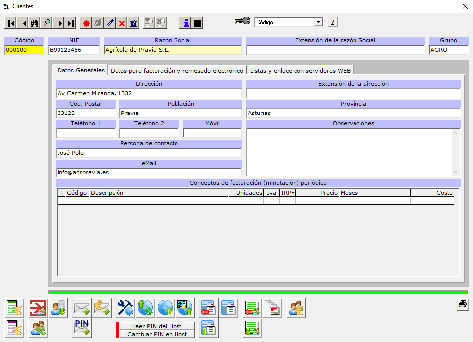 correspondiente al cliente. Los botones situados a la derecha permiten hacer lo