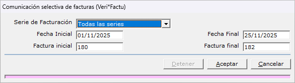 permite efectuar un envío selectivo de facturas pendientes de comunicación al sistema.